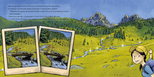 Les paysages représentés dans le livre sont fidèles à la réalité pour que les enfants puissent reconnaître les lieux s’ils sont amenés à faire la promenade. Ils pourront alors interpeller leurs parents pendant la balade et leur désigner avec fierté les éléments du livre.